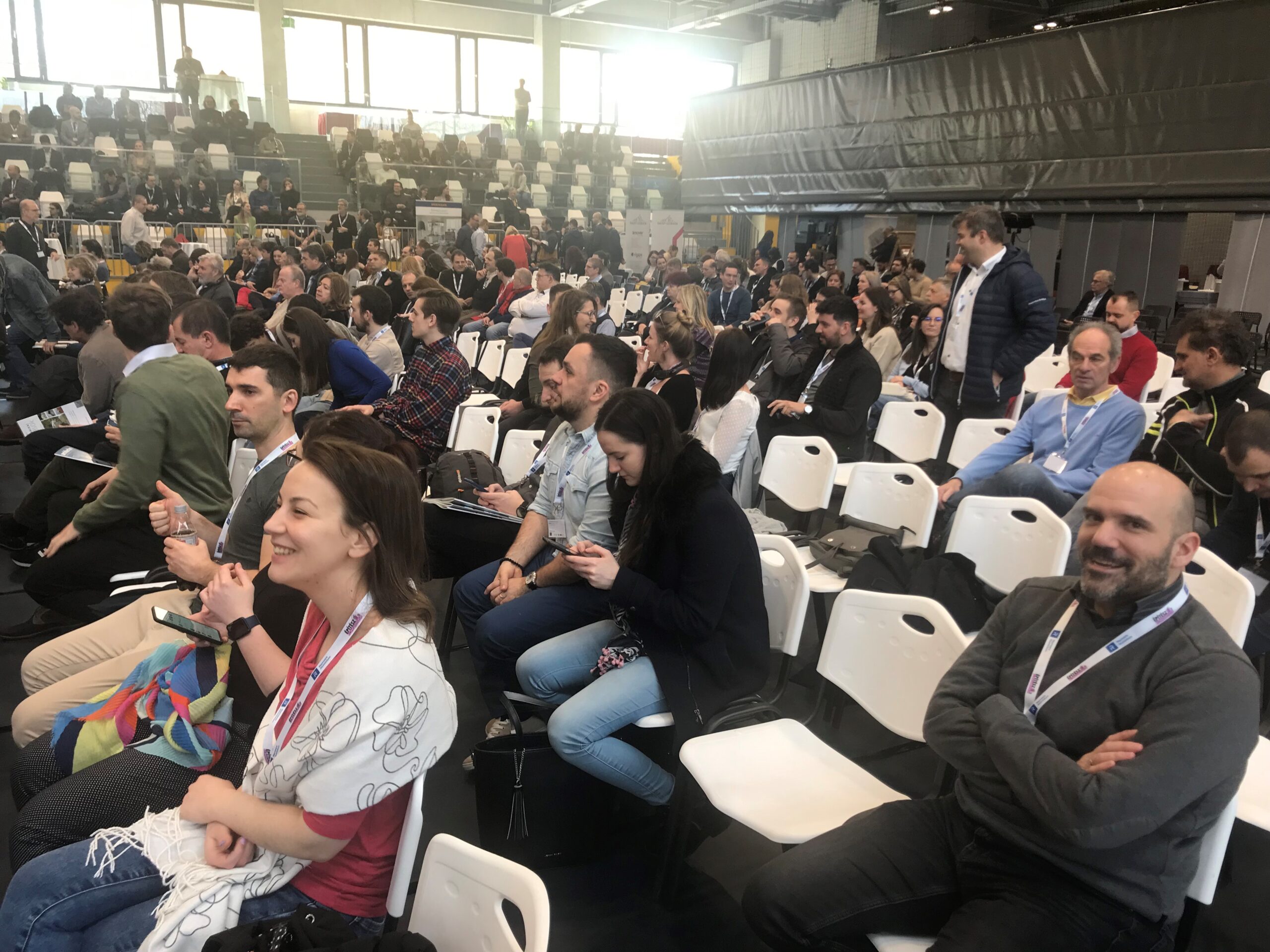 The first day of the conference started at noon with the opportunity to register. The visitors had one hour to do this. The new sports hall, chosen to be the location of the conference proved to be an excellent choice. Its striking appearance and its modern design solutions were able to engage the architects present, and it was a great talking point during the first hours. The actual congress took place in the gymnasium on the second floor, where a large number of sponsors had their stands introducing their products and services. This was all set up at the back of the gymnasium, which was split into two parts. There was an opportunity to talk to the speakers, partly here and partly at the viewing area during the breaks. Catering was also provided here.