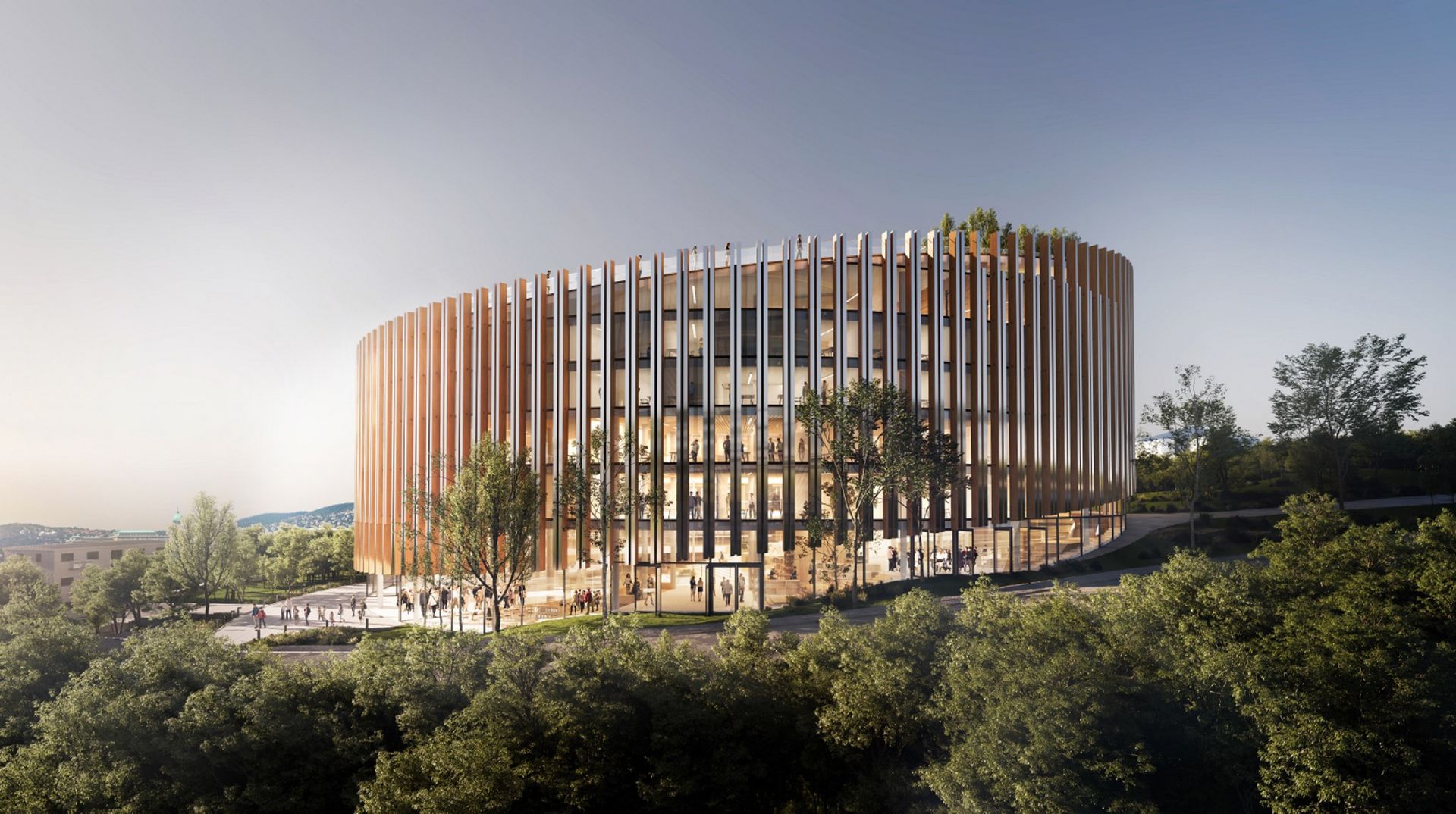 A Mathias Corvinus Egyetem új multifunkcionális épületének tervezésére kiírt építészeti tervpályázaton megvételt nyertünk. Ezúton is gratulálunk a résztvevőinknek és köszönjük a közös munkát az ARROW Architects és a Lépték-Terv Tájépítész Iroda csapatának! A pályamű az Ajánlatkérő számára minőséget képvisel, különösen a terepre illesztés, a térszervezés és az elegáns belső udvar tekintetében. Különösen szép megoldás jön létre az aula terében és szintjében, ahol a terepre ülteti a központi teret, kissé amfiteátrum-szerűen az enyhe emelkedést követve erénnyé teszi a terep változásait, nem kiküszöbölendő problémaként kezeli, izgalmas látványaival hosszabb időzésre csábít, ezáltal komoly közösségépítő potenciált hordoz.