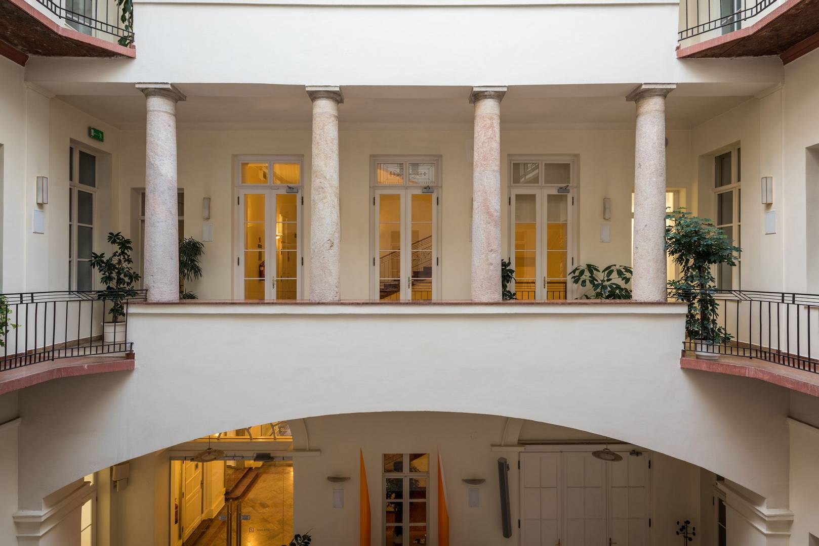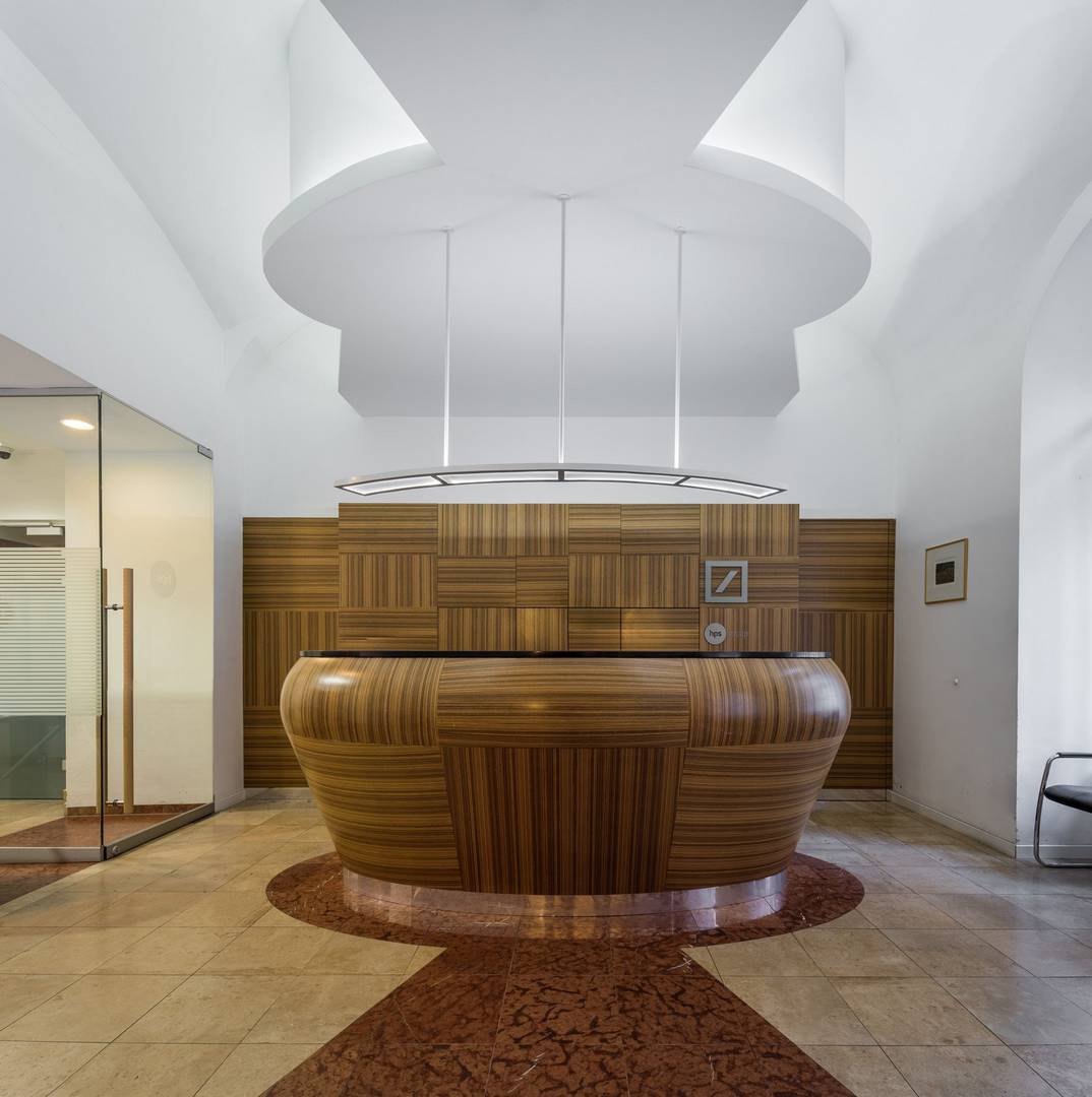 A Deutsche Bank budapesti székházának műemlék épületében a tűzvédelmi korszerűsítés és a belsőépítészeti kialakítás teljes körű tervezési munkálatai tartoztak a feladataink közé.