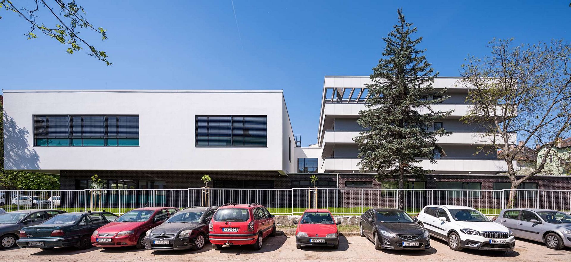 Budapest XIV. kerületében található a Magyar Táncművészeti Egyetem épülete, melynek átalakítása és bővítése terveink alapján készült.